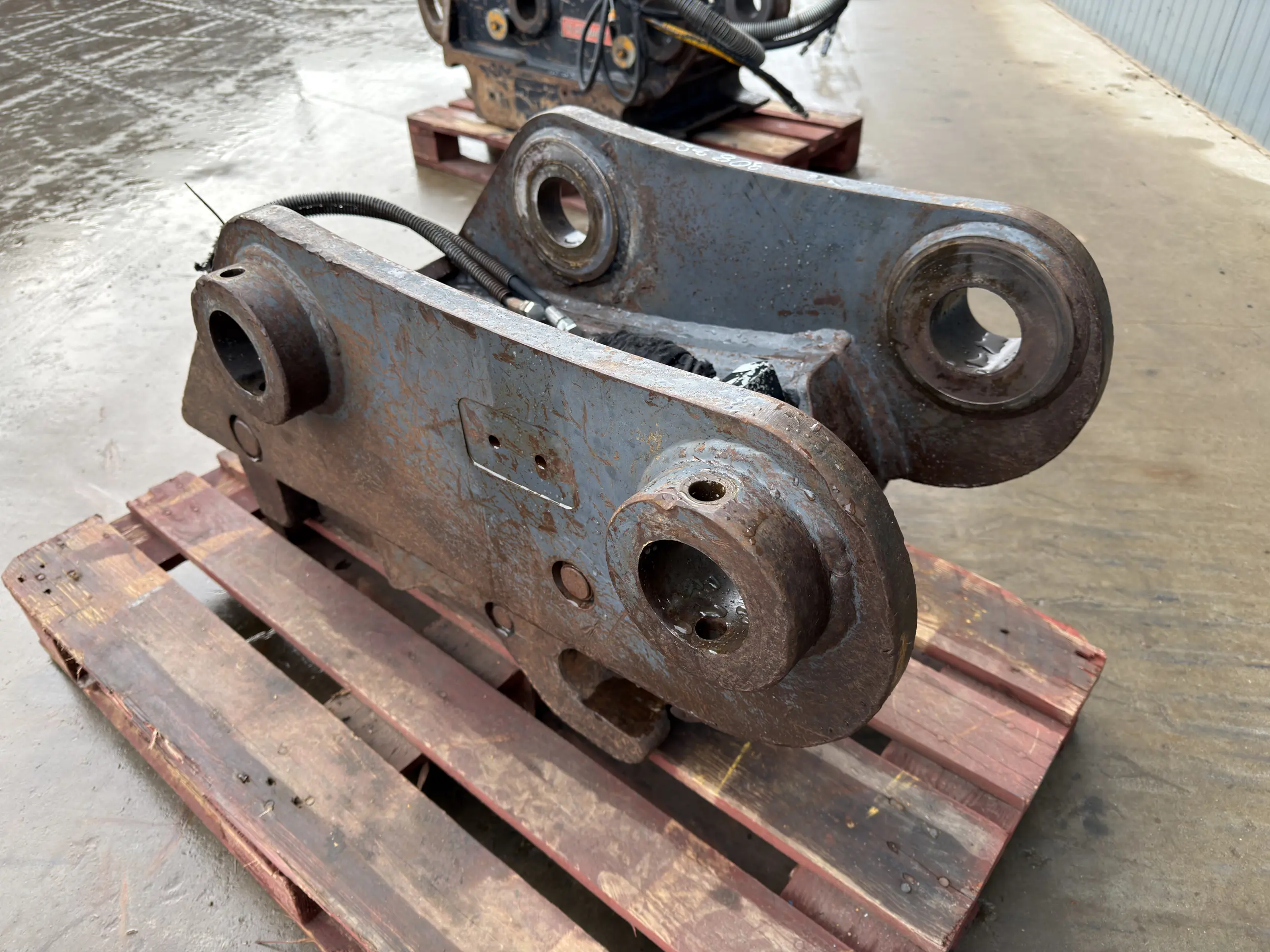 Used hydraulic quick coupler with pin-on connection. Pin: 80 – Stick: 325 – center to center 490
