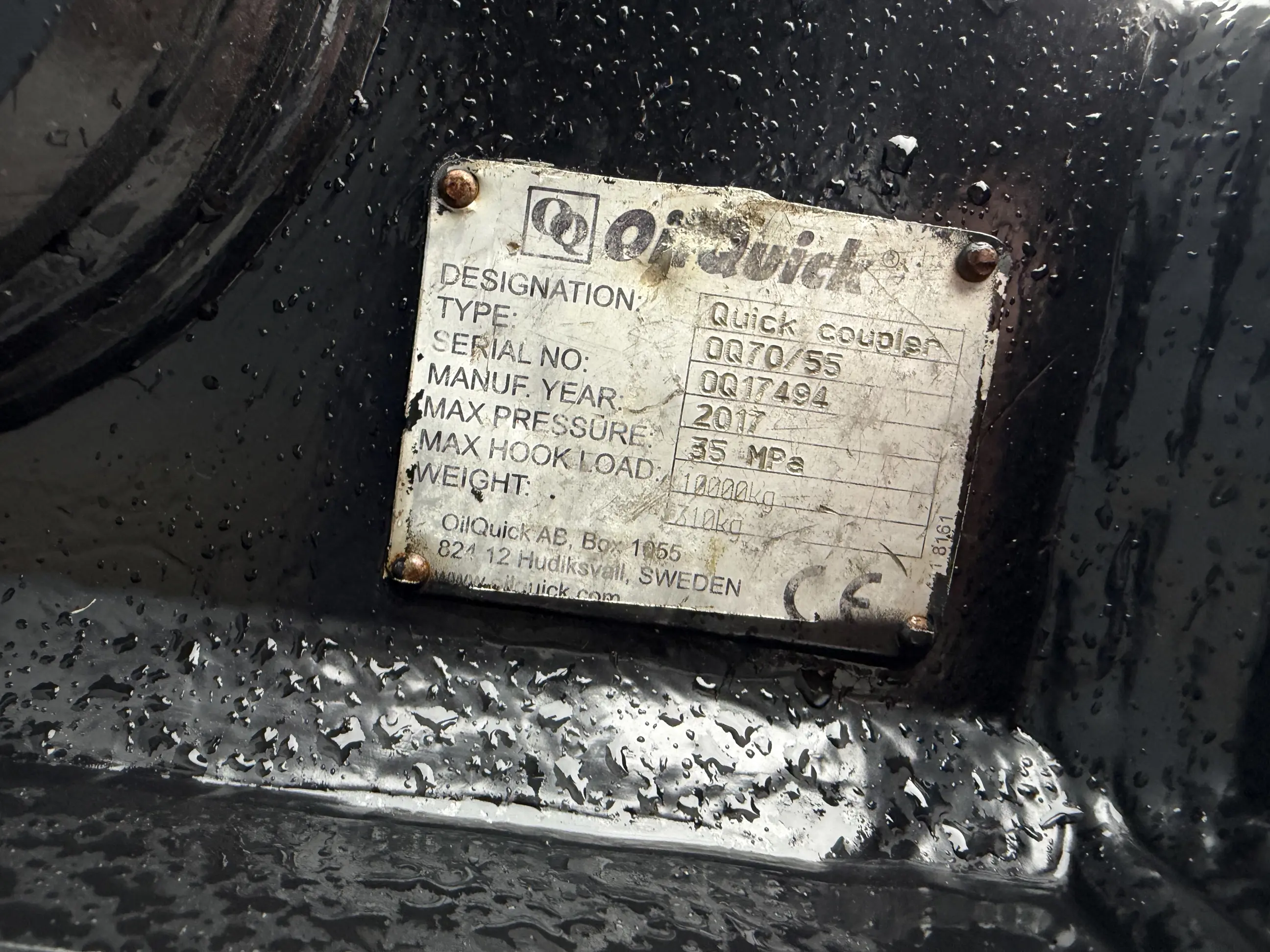 Used quick coupler with connection Oilquick OQ70/55. Pin: 80 mm – Stick 310 mm – center to center bolt 465 mm.