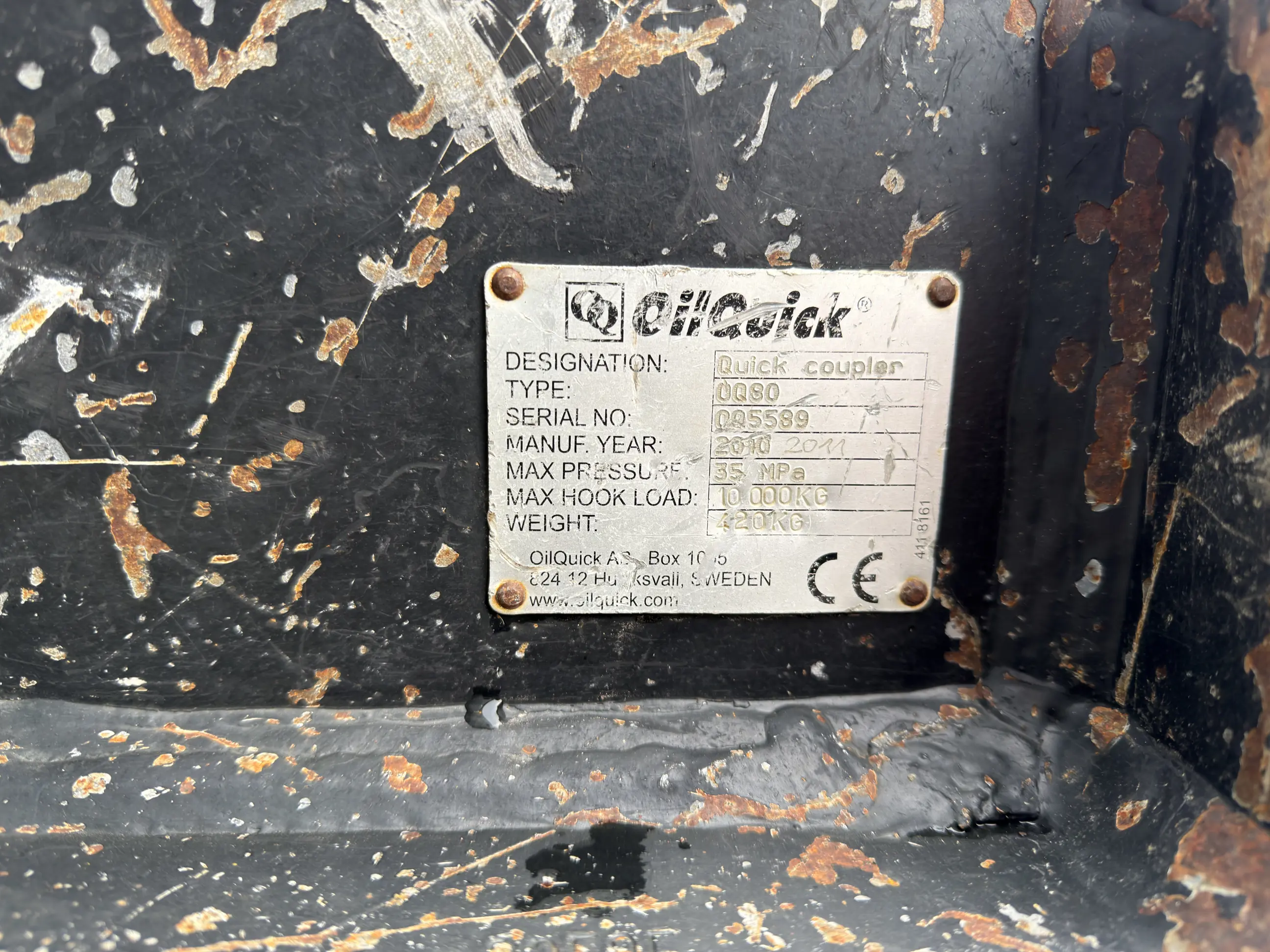 Used hydraulick quick release Oilquick OQ80, suitable for a Caterpillar 330F, Pin 80 -Stick 310 – Center to center 460.